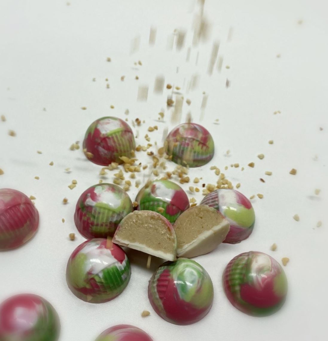- Täytä praliinikuori reseptisi mukaan ja houkuttele sitten sulatetulla suklaalla.