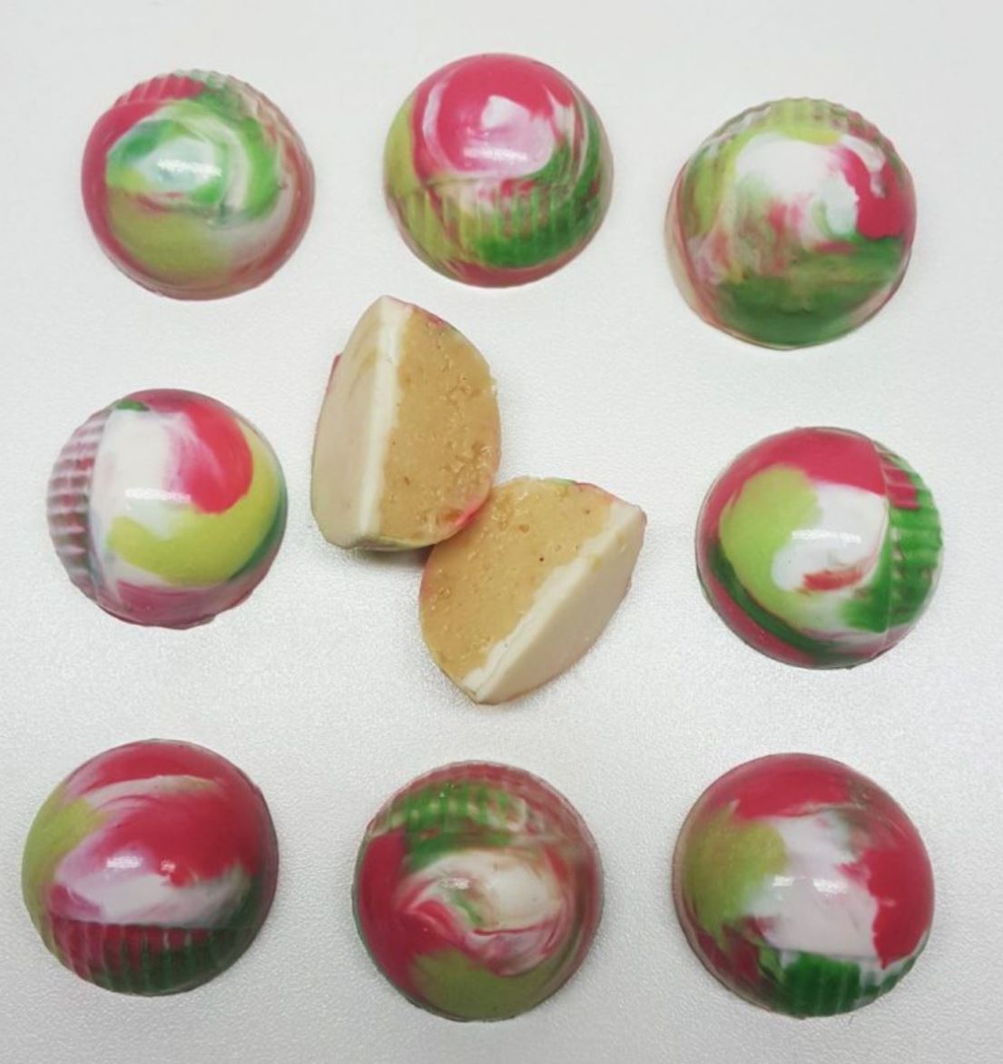 BWB:n 3-osainen praline-muotti kuvun muotoisten konvehkojen valamiseen, joissa on tyylikkäät raidat toisella puolella. Praline-muotissa on merkintä, joka ilmaisee tarvittavan suklaamäärän ja silikonipohjan ansiosta kaikki praliinikuoret täyttyvät tasaisesti ja siististi. BWB:n praliinimuottien avulla saavutat täydelliset tulokset tuhlaamatta arvokasta suklaata.