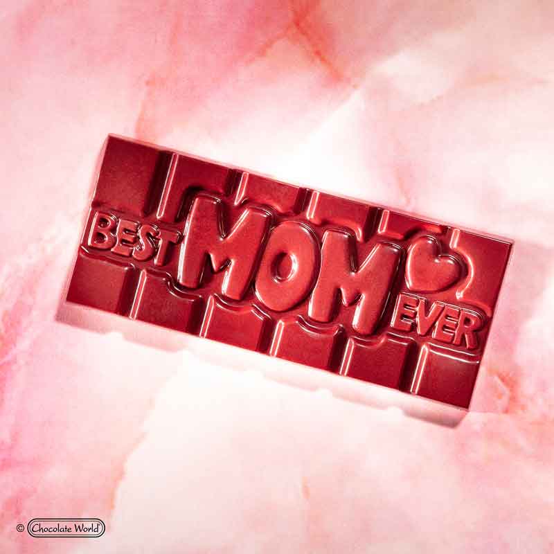 Praliinimuotissa on 4 suklaapatukkaa, joissa on teksti Best Mom Ever.