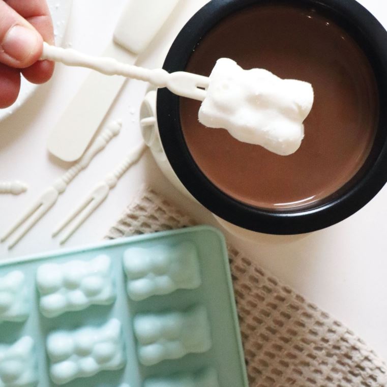 Setti sisältää myös käytännöllisiä lisätarvikkeita hedelmien, vaahtokarkkien ja muiden herkkujen dippaukseen: