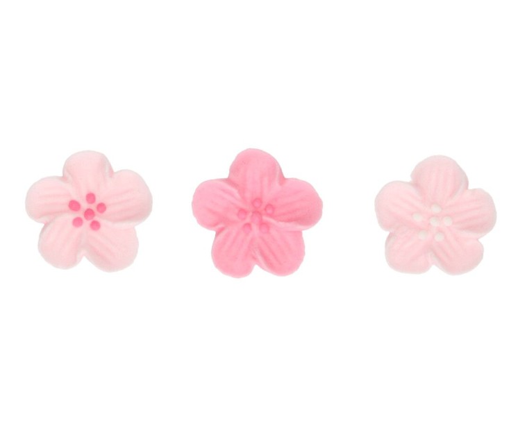 Anna leivonnaisillesi ripaus vaaleanpunaista eleganssia FunCakesin suurpakkaus sokerikoristeilla Kukat Vaaleanpunaisia, 288 kpl. Tämä sokerimassakukkien sekoitus eri muodoissa ja vaaleanpunaisen sävyissä antaa romanttisen ilmeen kakkuihin, cupcakeihin ja leivonnaisiin.