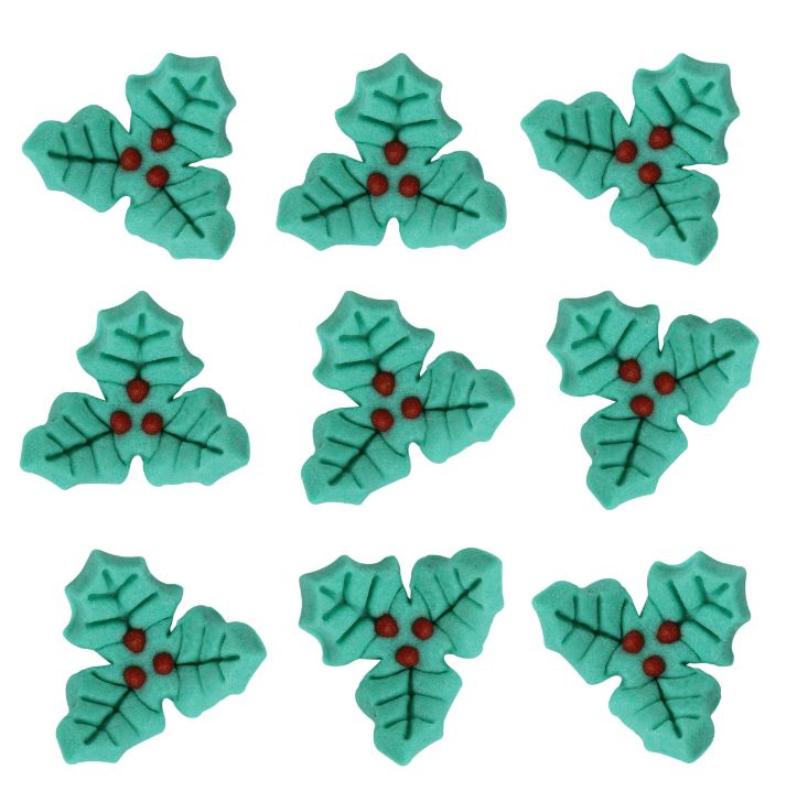 Syötävät koristeet mistelinlehden muodossa PMEä. Nämä käsintehdyt koristeet ovat valmiita asetettaviksi suoraan herkkujesi päälle. Täydelliset niin joulun juhliin kuin glögikahville.