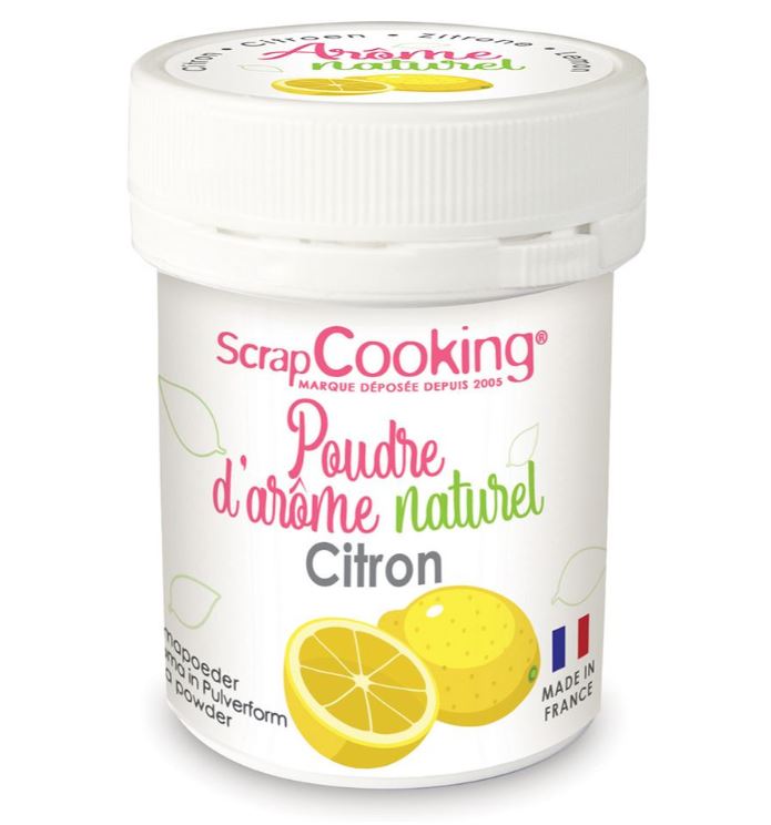 Luonnollinen sitruuna-aromi jauheena ScrapCookingilta. Nämä luonnolliset makuaineet tuovat kakkujesi ja jälkiruokiesi makuelämykseen intensiivisen ja aitouden.