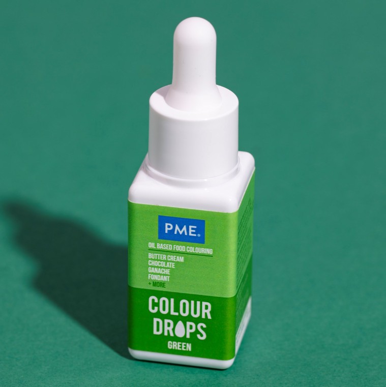 PME Colour Drops on erityisesti kehitetty öljysekoitus, joka sekoittuu saumattomasti rasvapitoisiin elintarvikkeisiin, antaen voimakkaita värejä voikreemiin, suklaaseen, ganacheen, sokerimassaan ja kakkupohjiin.