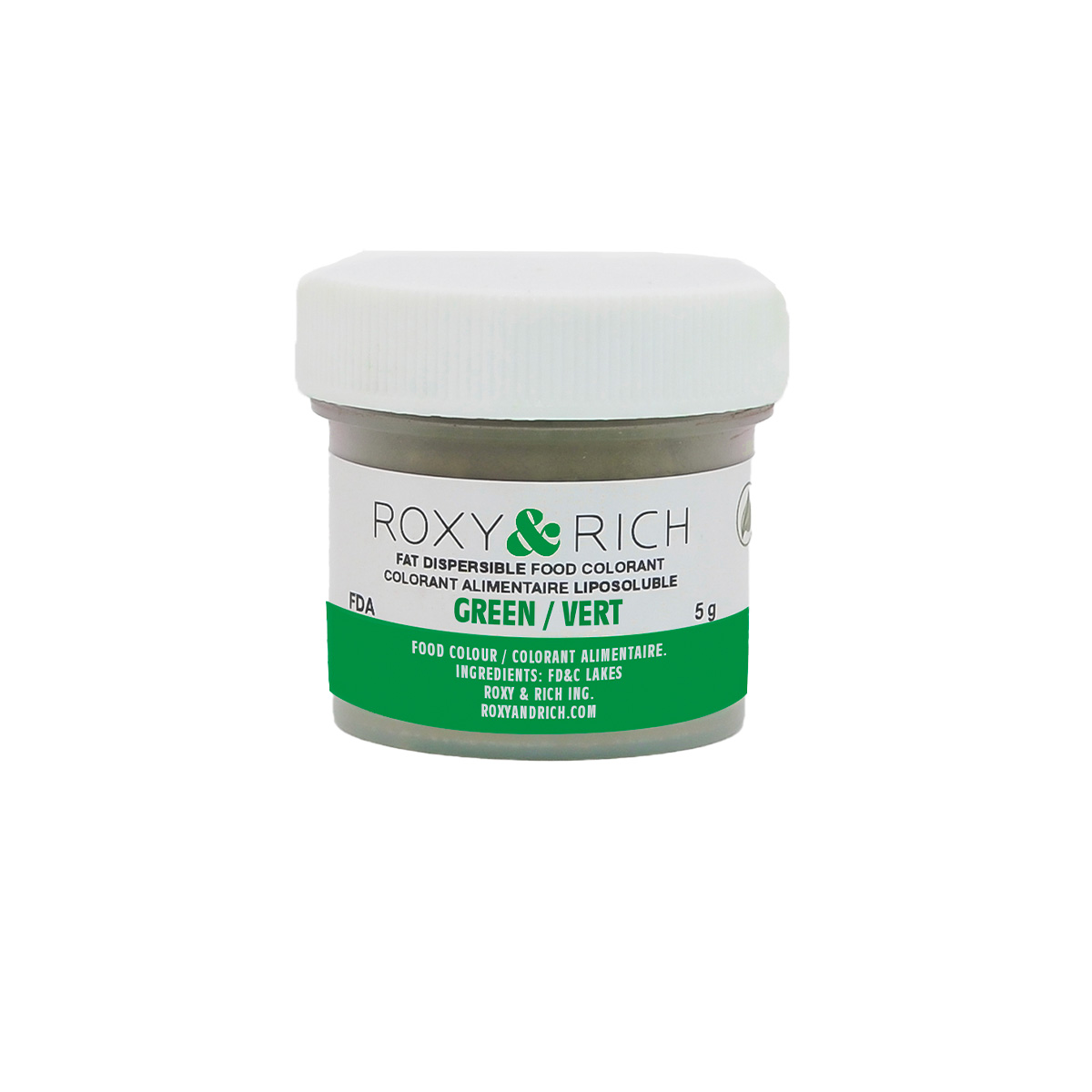 Roxy & Richin rasvaliukoinen jauhemaali. Jauheväriä käytetään öljypohjaisten tuotteiden kuten suklaan, voikerman, karkkien ja kuorrutteen värjäämiseen. Väri ei "vuota", mikä helpottaa, kun joutuu käyttämään eri värisävyjä vierekkäin.