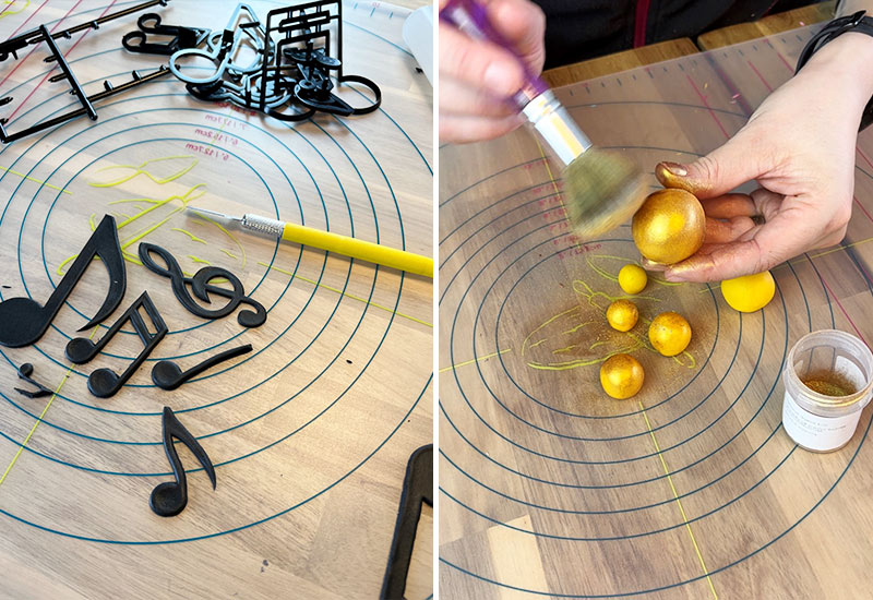 - Kavla ut svart modelleringspasta för musiknoterna. Skär ut formerna försiktigt med hjälp av utstickarna från Patchwork Cutters.
