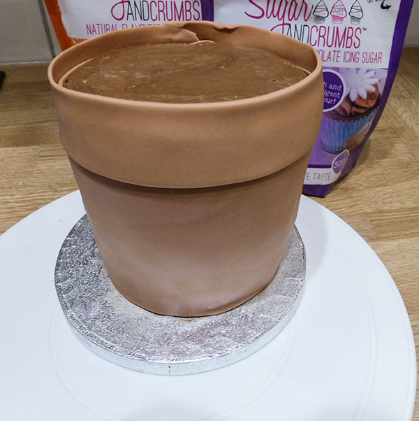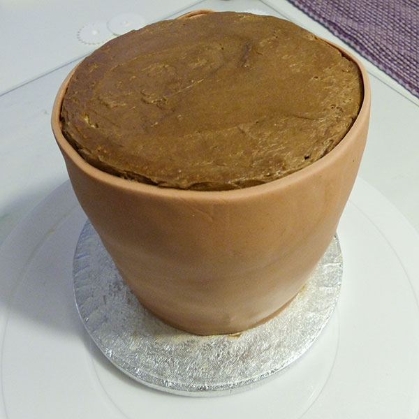 Och när vi ändå gör en tårta, varför inte forma den till en kruka med en liten vårblomma?