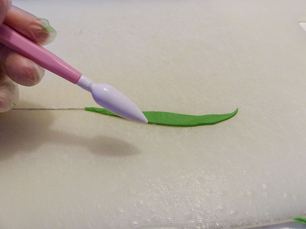 Använd lite vit eller ljusrosa sockerpasta och forma en kon. Lägg till lite, lite grönt på ena sidan.